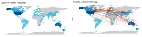 As with other areas of scientific inquiry, researchers in the Global North have been more invested in climate change and marine biodiversity than Global South academics, judging by the volume of work produced, as seen in Figure 4. This study found that, in most cases, these studies were conducted by states with coastlines with the highest concentrations. These studies were conducted by the USA, the United Kingdom, Australia, Canada, France, and other states in the Global North. Very little has been done in Africa, with studies emerging in South Africa and several states in South America. Only a few states in South America have not explored the dynamics of biodiversity and climate change in that region. On the other hand, no studies have been conducted in many states on the west coast of Africa and in island states such as Madagascar. This could point to significant knowledge gaps in some regions. There are also significant knowledge gaps in the Arctic region. It is worth noting the considerable interest exhibited in this matter by Asian countries, including China.