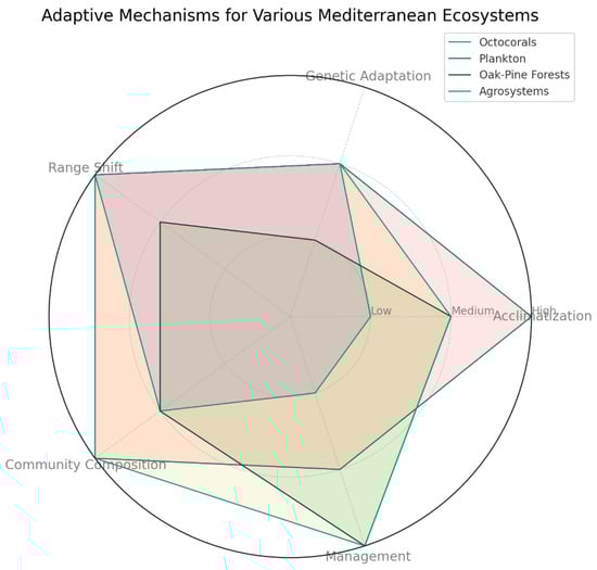 Other scholars believe that marine species have been involved in range shifts as an adaptation strategy. The range shift mechanism involves species moving to new areas with more favourable environmental conditions [72,73]. This adaptation technique has been observed in both terrestrial and marine species. Range shifts typically occur poleward or upward on land and can manifest as depth shifts at sea. However, range shifts may be constrained by factors like habitat fragmentation and time, particularly for sessile species. The poleward shift in species will create challenges for those regions species are moving away from. There are also fears that this adaptation will result in challenges, as it will disrupt the food chain for higher-latitude areas by introducing new predators to those ecosystems [73].