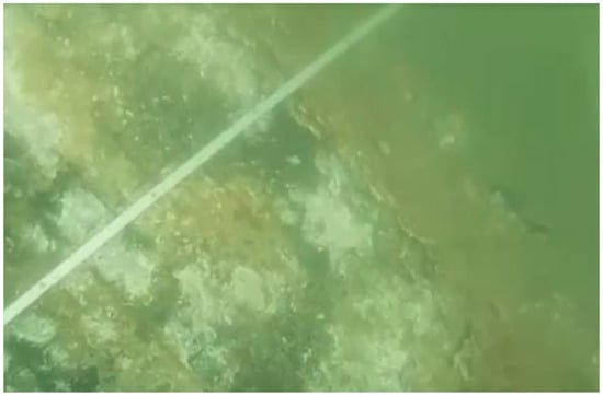 Smart pigging, acoustic monitoring, remotely operated vehicles, and diving are the current cornerstones of SP inspection, all of which are characterized by high costs and some limitations []. In [], a comprehensive review of in-pipe robots from different perspectives is provided. In particular, attention is focused on their ability in terms of self-localizing, mapping the pipelines, moving into them, and assessingth pipe conditions. Smart pigging uses intelligent devices called pressure inspection gauges (pigs) that travel through the pipeline, collecting data on wall thickness, corrosion, and other potential anomalies (e.g.,  []). This in-line inspection method is highly regarded for its accuracy and ability to provide comprehensive health assessments without disrupting pipeline operations (e.g.,  [,,,,,]). However, it can be limited by its reduced maneuverability and the types of anomalies that are not always detectable from inside the pipe, such as external wall deterioration. Acoustic monitoring is based on the propagation of sound waves through the pipeline material to detect leaks or structural weaknesses. The acoustic signatures are analyzed to determine the location and severity of any irregularities detected, allowing timely intervention. However, it can fail to pinpoint the exact location of a leak or distinguish between different types of acoustic signatures in noisy subsea environments (e.g., [,]). Remotely operated vehicles equipped with cameras and sensors provide versatile platforms for visual inspection and intervention in deep water environments, but their effectiveness is often hampered by underwater currents and visibility issues. Diving operations offer unique human judgement but are constrained by depth limitations, potential health risks to divers, underwater currents, and visibility issues. Figure 1 shows a typical example of the environment around an SP and the external condition of its outer surface; it gives an idea of the difficulty experienced by divers in investigating the condition of SPs.