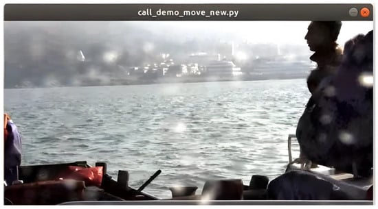To validate the feasibility of the proposed algorithm on USV platforms, it was deployed on the USV platform depicted in Figure 9. The interface of the perception system’s operational environment is illustrated in Figure 13. To quantitatively demonstrate the system’s capabilities, this paper conducted on-site tests in the Weihai Sea area. Under sea condition level three, the tested vessel approached the USVs at a cruising speed of 10 knots from a distance of 4 km. The USV ceased its operation upon the successful identification of the target buoy.