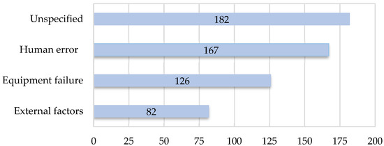 A good understanding of the basic causes leading to an accident is essential in any risk assessment. The database is analyzed thoroughly to obtain generic allision causal scenarios based on balanced hazard identification and analysis of historical incidents. The basic cause is the last identified factor in the investigation reports and may not be a root cause that is the most fundamental set of circumstances (may be active or latent) that lead to an event. From the recorded 557 incidents, basic causes are identified only for 375 incidents (Figure 2). The reported basic causes have been slightly modified as per the authors’ opinion and understanding of the scenario.