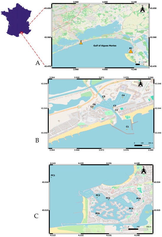 Chouba C, Pringault O, Domeau A, Delpoux S, Causse L, Marie M, Freydier R, Montigny C. Added Value of Water Column Spatiotemporal Monitoring to Assess Variability of Trace Metal Elements and Organotin Compounds in Mediterranean Harbours. Journal of Marine Science and Engineering. 2024; 12(3):399. https://doi.org/10.3390/jmse12030399