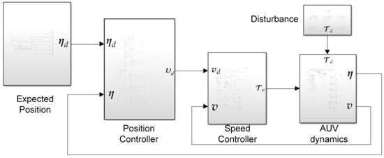 Therefore, the designed virtual control input Equation (22) can guarantee that the 6-DOF AUV can achieve stability in the velocity loop. The position loop selects the following Lyapunov function: