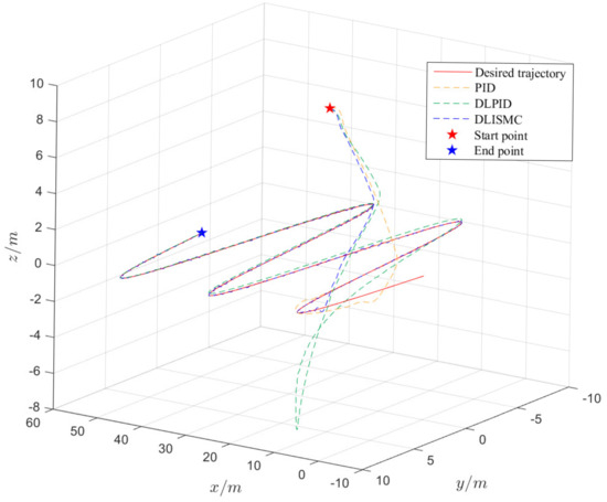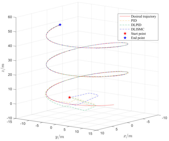 In order to verify the feasibility of the proposed control method, two kinds of trajectory-tracking situations are realized. One is the three-dimensional plane cosine trajectory, and the other is the space spiral expected trajectory.