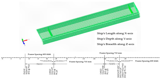 2.1.4. Analysed Ship Structural Analysis—Upright (Head Sea) Condition