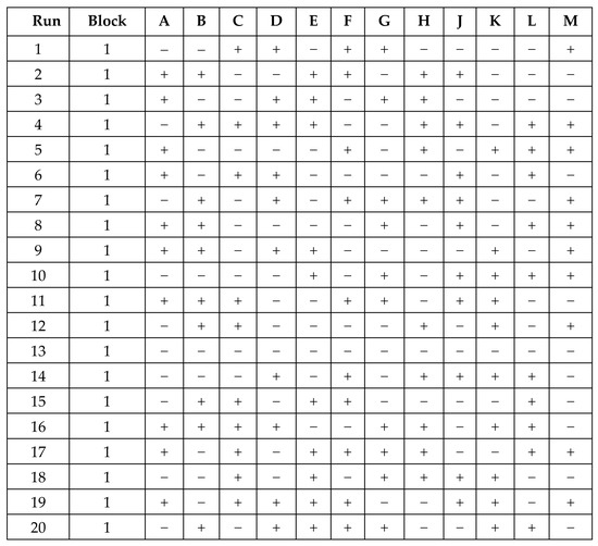 - Tyssedal, J.; Samset, O. Analysis of the 12 run Plackett-Burman design. Prepr. Stat. 1997. [Google Scholar]