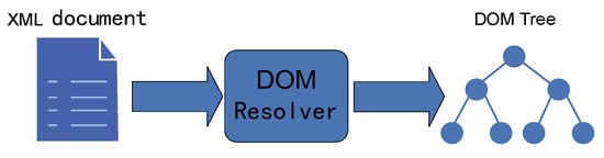 Initially, upon loading the XML document, the element nodes within the document are transformed into nodes within the DOM tree [], enabling deconstruction. While this approach places certain demands on device performance and necessitates a complete pre-reading of the XML file before conversion, it offers a straightforward and efficient deconstruction method. The specific conversion process is outlined in Figure 1.