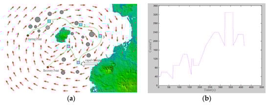Figure 6a provides a simulation validation of events involving non-human-induced changes in task parameters encountered during the UUV’s mission execution. Specifically, during the execution of the task in Region 4, the UUV’s navigation speed undergoes a modification, increasing to 1.4 times its original value. As a result, the time required for task completion is relatively reduced. Figure 6b illustrates the motion direction of the UUV in this context.