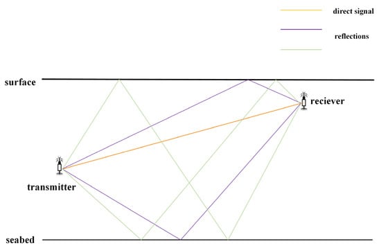 where and denote the time delay for surface reflection and seabed reflection, separately. denotes the number of reflection times.