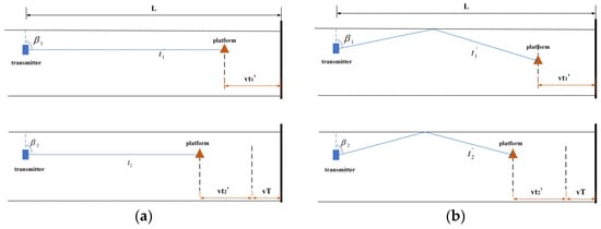 Diagram of received signals considering relative motion (a) direct signal; (b) reflected signal.