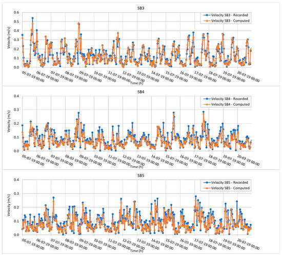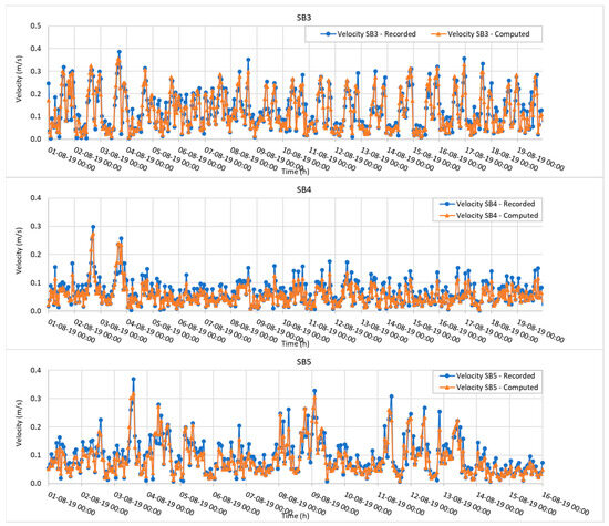 The series of figures from Figure 5, Figure 6, Figure 7, Figure 8, Figure 9 and Figure 10 is shown to provide a visual comparison of simulated and measured data for the model performance. Due to our data, which can be positive and negative, it should be noted that the (qobs) in the denominator of Formula (8) is under the form of absolute value to avoid the ith division by a zero sum.