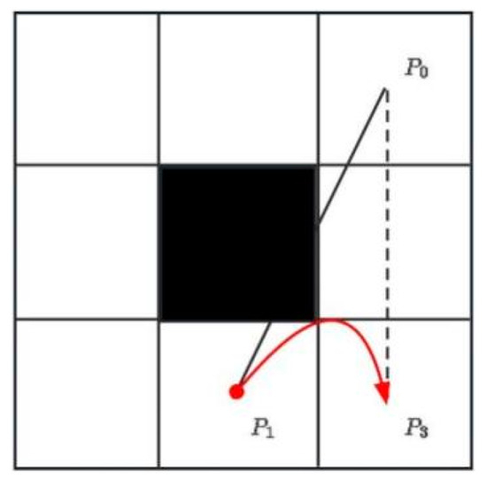 In this equation, the function f is Advanced_sprcv. When the error angle is , the number of grid errors is greater than or equal to 2. If the formula insists on using arctangent for projection, although the results can be obtained, there are multiple errors and obstacles in the projection process. Therefore, the function is used to apply the smooth optimization in advance, as shown in Figure 10.