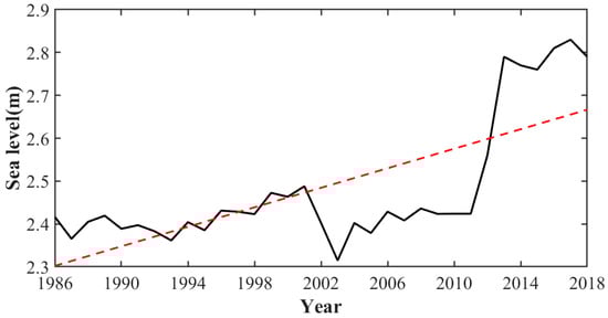- Sun, Y.W.; Li, Y. Assessment of spatio-temporal distribution characteristic of sea level anomaly changes and its potential socio-economic risks in China’s coastal areas from 1993 to 2018. J. Nat. Resour. 2022, 37, 1073–1088, (In Chinese with English Abstract). [Google Scholar] [CrossRef]