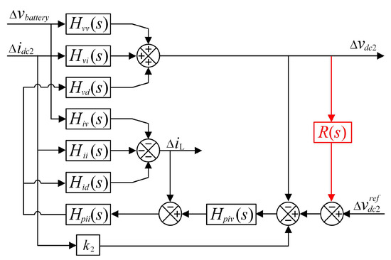 Small-signal control block diagram of the bidirectional DC/DC converter after impedance reshaping.