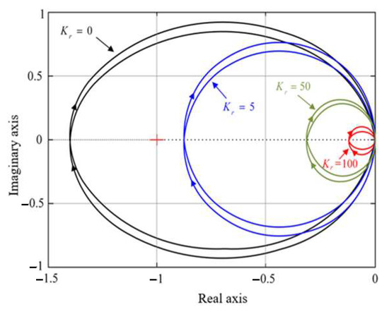 A Nyquist plot of as a function of after impedance reshaping is shown in Figure 11. From the graph, it can be observed that when = 0, the impedance adjuster has no effect. At this point, the Nyquist curve of the system surrounds the point (−1, j0), indicating system instability. As the gain of the impedance adjuster gradually increases, the Nyquist curve of gradually moves away from the point (−1, j0), enhancing the stability margin of the system and improving the anti-interference capability of the DC bus voltage.