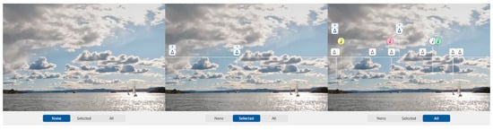 The POI buttons are structured above the horizon line to ensure they do not interfere with any objects in the water. The sky is divided into rows where different types of POIs such as ships and lighthouses are categorized into separate sections. “Selected” POIs occupy a single row at the top to better separate them from the rest (