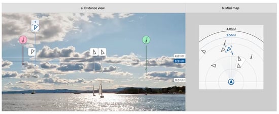 Figure 10). The user must be able to obtain an unobscured view of ocean space at any time. We argue that a dense information view should only be used temporarily if the AR view replaces the real view, such as with see-through AR glasses. This can be useful to swiftly compare the outside view with sensor data.