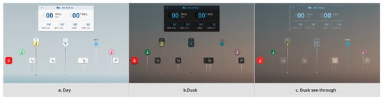Figure 13 shows (a) day palette and (b) dusk palette. We use the same palette setup for VR pass-through devices since they also rely on overlaying graphics on video.
