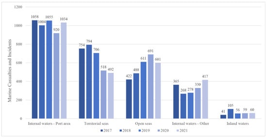 Evolution of marine casualties and incidents in the period 2017–2021.