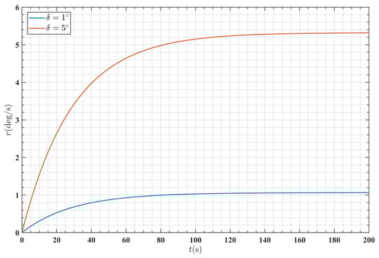 In this paper, to facilitate the analysis of the ship’s yaw characteristics, the simplified first-order linear KT equation derived from NOMOTO [], as presented in Equation (6), is adopted.