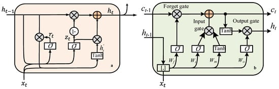 Structural diagrams of the networks. (a) The GRU. (b) The LSTM.