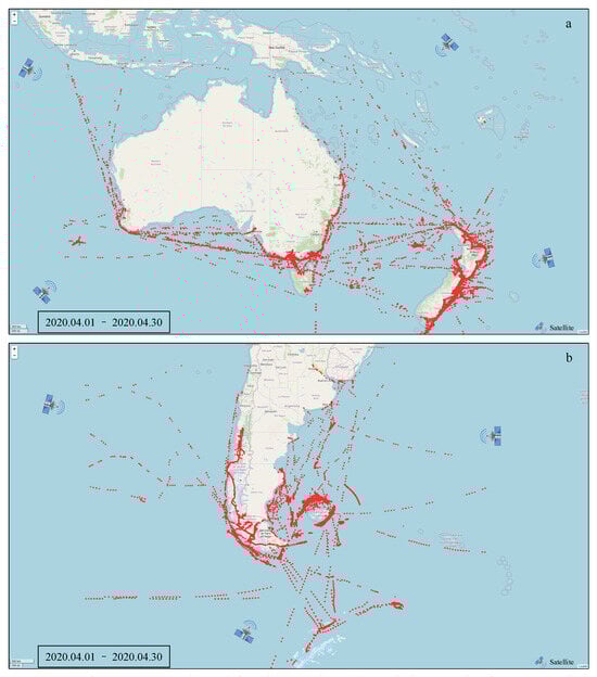 The Automatic Identification System (AIS) is utilized for condition monitoring and the condition data management of seagoing vessels [,]. It is characterized by its wide coverage and large data volume. AIS data record important information, such as a ship’s position, course, and speed during navigation, which is extremely valuable for studying advanced models in terms of predicting ship trajectories []. In particular, satellite-based AIS systems can overcome the limitations of limited distances from land-based base stations and can monitor the status of oceangoing vessels []. Therefore, AIS data are frequently utilized to study advanced models for forecasting the trajectory of ships [].