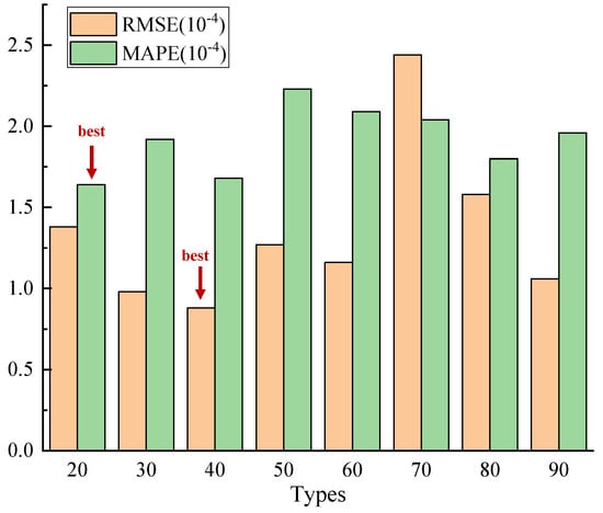 The data of these eight ship types were separated from the dataset; then, our trained AMD model was used to predict the experimental results for different ship type datasets. As shown in Figure 7, under the and evaluation metrics, the ship types of 20 (wing-effect craft) and 40 (high-speed craft) had the best prediction results. This may be related to the satellite AIS receivers exceeding the distance limit. In general, land-based AIS receivers cannot effectively collect ship data due to distance limitations, but satellites can overcome this limitation.