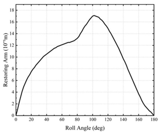 Xu simulated the whole self-righting process of an electric propulsion unmanned ship and computed restoring time [20]. Nevertheless, the acquisition of restoring time is mainly based on static stability theory, in which the damping factor and the wave factor are not considered or are simplified via estimation. The above static stability method, which only exists according to restoring arm curves, cannot meet present design requirements which contain restoring time.