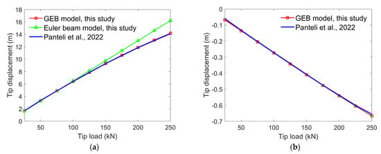 Figure 19 shows that, regardless of whether the simulations utilized the Euler beam model or the GEB model, the deformations reduced the loads. A detailed comparison of the results is shown in Table 2. Additionally, an analysis and discussion of the results were conducted from four primary perspectives as follows: