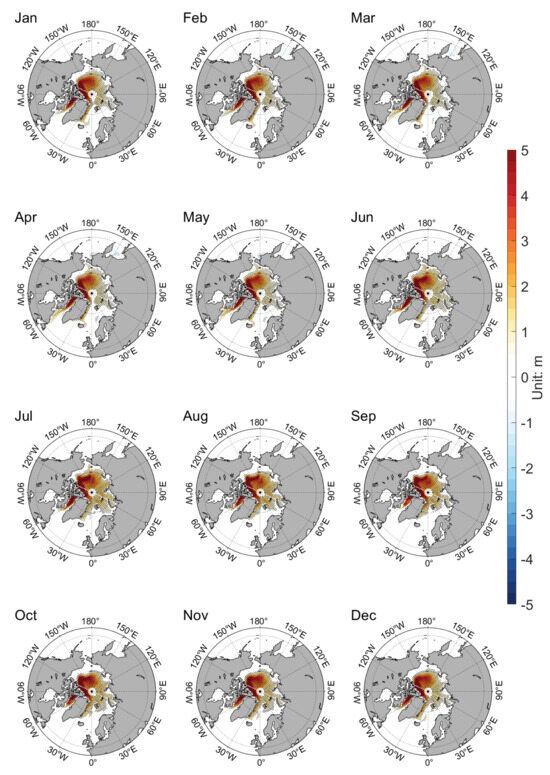 - Chen, L.; Wu, R.; Shu, Q.; Min, C.; Yang, Q.; Han, B. The Arctic Sea Ice Thickness Change in CMIP6’s Historical Simulations. Adv. Atmos. Sci. 2023, 40, 2331–2343. [Google Scholar] [CrossRef]