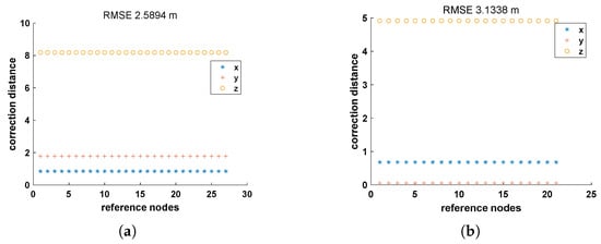 Range correction performance of ITRUL. (a) Sensor node 1. (b) Sensor node 2.