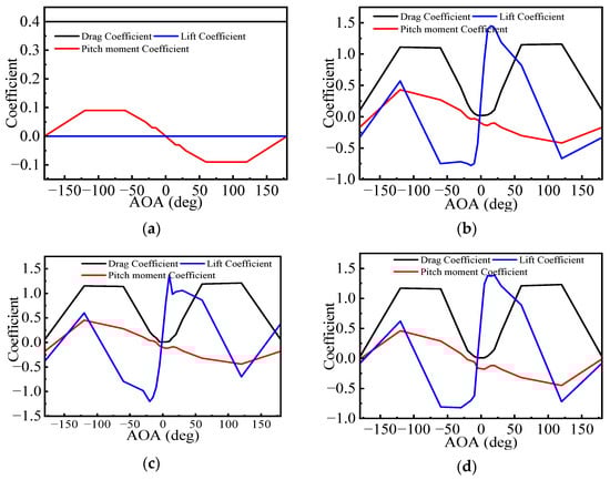 Airfoil characteristic curve. (a) No. 1 airfoil characteristic curve, ; (b) No. 2 airfoil characteristic curve, ; (c) No. 3 airfoil characteristic curve, ; (d) No. 4 airfoil characteristic curve, .