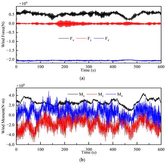 A fundamental assumption of this study is that the tower structure is primarily influenced by wind loads at the top of the tower. Two sets of transient dynamic analyses were conducted to verify this hypothesis in Ansys. In the first set, the wind loads in the six directions extracted in the previous step were applied to the mass point at the top of the tower, along with the pressure from the wind field applied to the surface of the tower. In the second set, the wind loads in the six directions were applied solely to the mass point at the top of the tower.