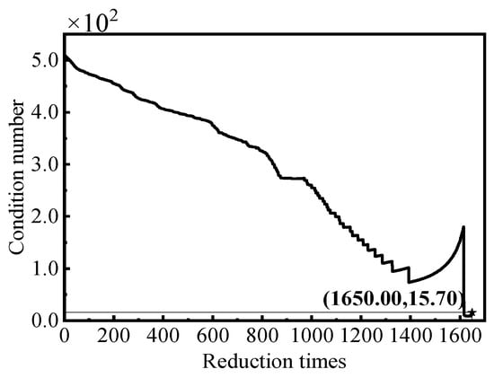 where represents the norm of . Common norms include , , and , where denotes the maximum eigenvalue of . In this study, is utilised to calculate the condition number of matrix . The larger the condition number, the greater the ill posedness of the linear system.