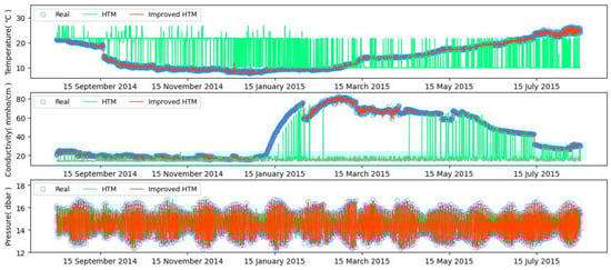 HTM and improved HTM predictions on temperature and conductivity and pressure data.