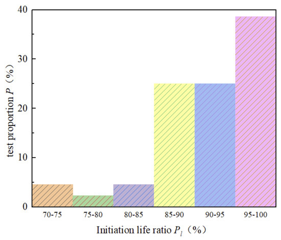To clearly show this result, the proportion of the initiation life of the sample life is divided into sections of 5%. Table 6 and Figure 8 show the test proportion P for all the test results for each section: