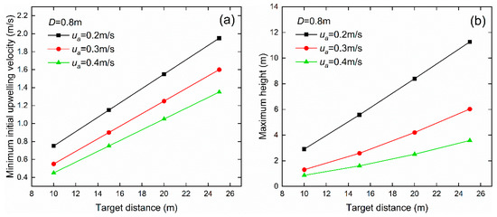 The minimum initial upwelling velocity (a) and maximum height (b) under different crossflow velocities.