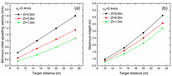 The minimum initial upwelling velocity (a) and maximum height (b) under different nozzle diameters.