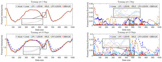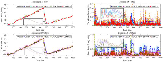 where , and the input data include USV’s state , control input , and model error , which all come from the system identification experiments on the USV platform, as described in Section 4.