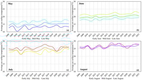 Sea surface temperature in the Yellow Sea from May to August in 2008–2023.