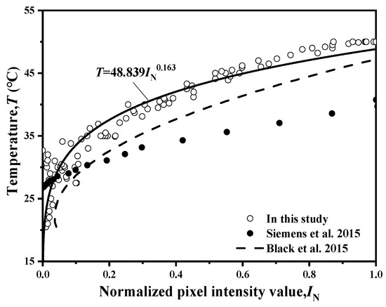 The relationship between temperature and normalized pixel intensity and the comparison with previous researches [17,18].