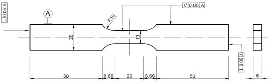 For the cyclic tensile–compression test, rectangular cross-sectional ratio specimens were selected with the same thickness as the standard tensile test specimens. The width of the parallel section for these specimens was 10 mm, and the total length of the specimen was 137.3 mm. While the cyclic tensile–compression test specimen shares a similar shape with the standard tensile test specimen, precautions were taken to prevent local buckling deformation during the compression test. Therefore, the length of the parallel section for the cyclic compression test specimen was reduced to 20 mm. The specific geometric dimensions are depicted in Figure 2.