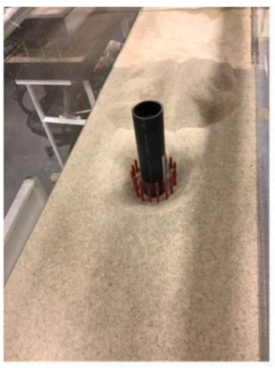 - Izadinia, E.; Heidarpour, M. Simultaneous use of cable and collar to prevent local scouring around bridge pier. Int. J. Sediment Res. 2012, 27, 394–401. [Google Scholar] [CrossRef]