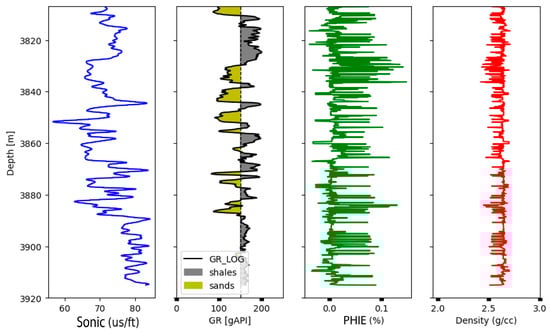 The present research used data from HZ-26-A in China for reservoir characterization and pore pressure prediction. The log is used for the calculation of parameters. The target zone for the reservoir and pore pressure prediction for HZ-26-A is 3820.15 m to 3837.98 m, and the overall thickness of the zone is 17.83 m. The lithological identification was performed through thin sections (using a German Leica polarizing microscope), and logging equipment was widely used in the geoscience of well HZ-26-A. The sampling and analysis were carried out in strict accordance with the requirements of geological design and on-site geological supervision to identify thin lithology sections in this well, as demonstrated in Figure 3. Present studies employed different types of techniques involving conventional and machine learning approaches.