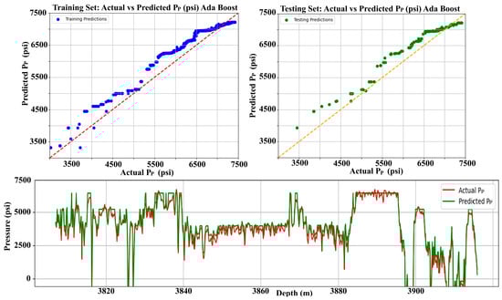 Predicted vs. actual pore pressure with the help of the ADA boost algorithm.