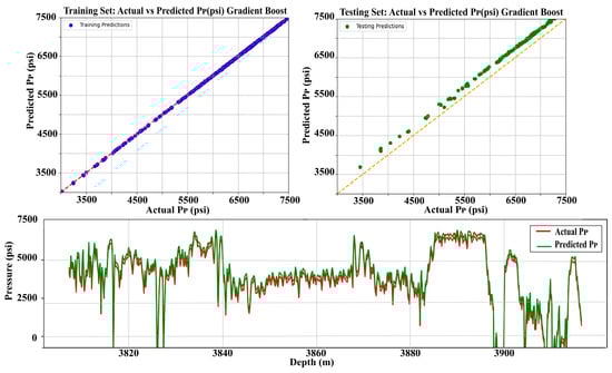By employing deep learning, Wei et al. [56] estimated pore water pressure and suggested that recurrent neural network results are much better than traditional methods. Precise pore pressure prediction was achieved by combining a mix of a random forest and least-square support vector machines with an optimization technique. Drilling data are less valuable than conventional well logs for machine learning-based formation pressure estimation. In our study, we employed different ML algorithms and performed validation with core measure Pp and found the best results to match predicted vs. actual Pp with the help of the ADA boost algorithm on the blind well with a correlation of 0.98.