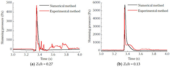 Considering the extraordinary shape of the sandglass FPSO, in order to better analyze its slamming characteristics, the sandglass-type model and the cylindrical model should be numerically simulated and compared with each other in Section 3. Thus, the experiments here of the sandglass-type model on our own and the cylindrical model by Zhu et al. [29] were taken as examples to verify the numerical method of this paper for simulating the slamming characteristics.