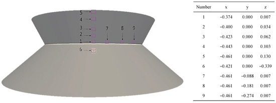Next, we delve into the wave impact of the upper floating body’s flare structure on slamming. Comparing the primary peaks of the slamming pressure curves of the sandglass-type model and the cone-cylinder model (depicted in Figure 41), we observe that the sandglass-type model exhibits a larger first peak, while the cone-cylinder model displays a larger second peak.
