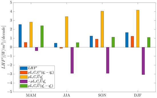 4.3. Possible Mechanism for Seasonal Dependence of the LHF Trend