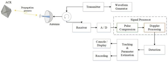 • Constructing a radar echo signal model of the ACR target based on a pulsed linear frequency modulation (FM) signal;